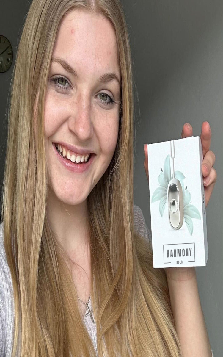 Los usuarios afirman que se sienten más relajados y menos ansiosos después de usar el dispositivo Harmony Hold desde la primera vez.